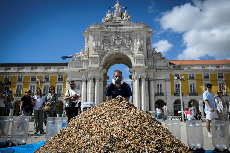 Des militants pour la protection de l'environnement ont collecté au Portugal quelque 650.000 mégots de cigarettes et les ont entassés dimanche sur une place du centre de Lisbonne lors d'une action de sensibilisation contre ce type de pollution.