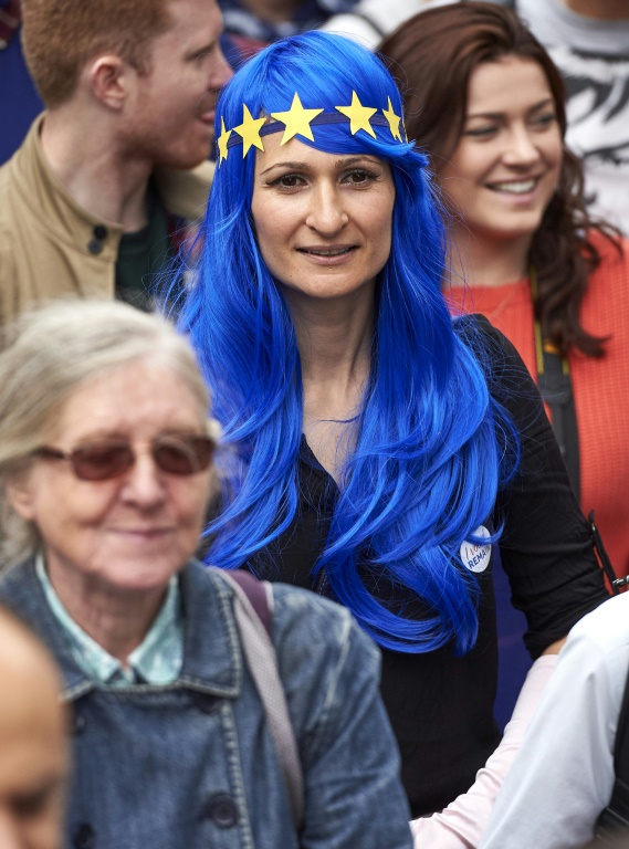 Les sujets de sa Majesté ont fait preuve de beaucoup d'imagination pour dire non au traumatisant Brexit, agitant des centaines de drapeaux européens bleus aux étoiles jaunes, des coeurs gonflables, avec moult slogans tels "Du fromage, pas Farage" --du nom du chef du parti Ukip, qui s'est battu pour le Brexit- "tu vas nous manquer l'UE", "Des baguettes, pas des regrets", "Vous jouez avec notre futur" ou, le plus répandu, "UE, je t'aime".
