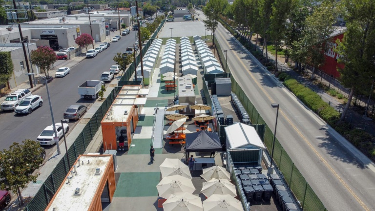 Le premier "village" de ce type à Los Angeles a ouvert ses portes début 2021 et plusieurs autres ont suivi. Des initiatives similaires ont vu le jour ces dernières années ailleurs en Californie, comme à San Jose, ou à Seattle dans l'Etat de Washington.