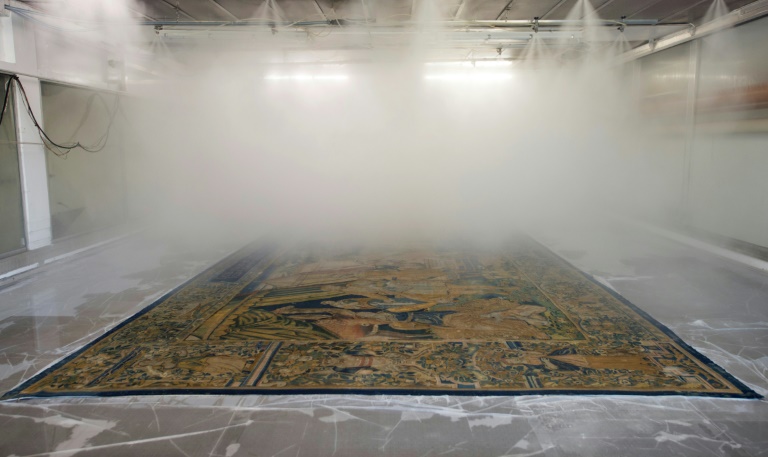 Le lavage d'une tenture est une étape très risquée: avec les années, le coton s'est souvent effiloché; la soie, elle, a été "pulvérisée sous l'effet du temps et de la lumière"; sans parler de l'histoire parfois mouvementée de certaines pièces.