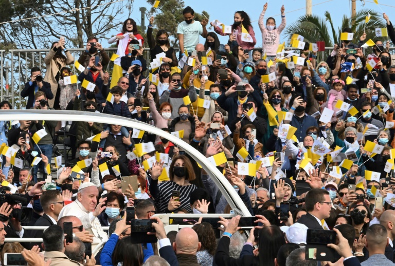 Arrivé pour la messe dans sa "Papamobile", François a été accueilli sur Granaries Square à Floriana, en périphérie de la capitale La Valette, par les acclamations de la foule, s'arrêtant plusieurs fois pour bénir des enfants et des bébés.