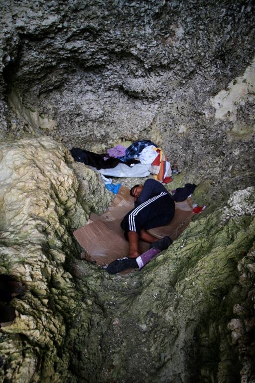 Certains enfants vivent dans des grottes inhospitalières face à la mer, très difficiles d'accès. Des cartons y servent de matelas, a constaté l'AFP. D'autres dorment sur des bancs publics ou dans des caches infectes sous un pont.