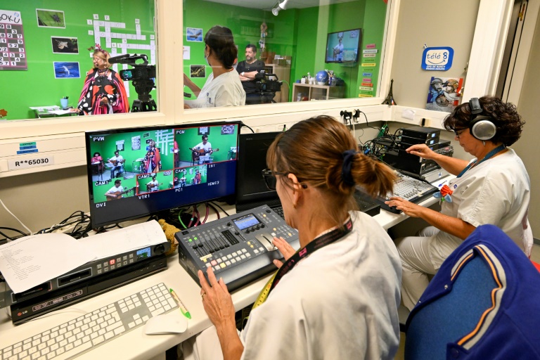 "Peu d'hôpitaux" possèdent un tel équipement, sourit Marie-Hélène Petit, éducatrice à l'hôpital et présentatrice de l'émission tournée en direct deux heures par mois.