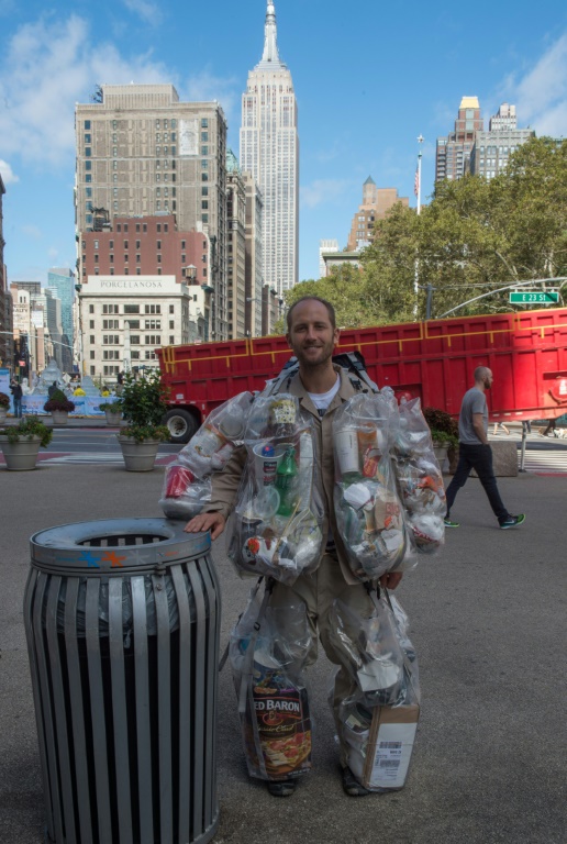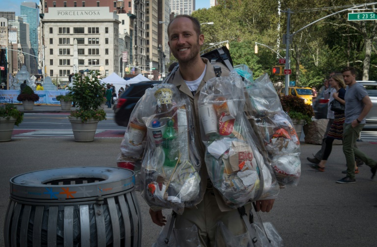 Un bibendum bardé de sacs en plastique remplis de ses ordures se promène dans New York depuis deux semaines: c'est Rob Greenfield, qui espère ainsi attirer l'attention sur la quantité de déchets générés par les Américains.