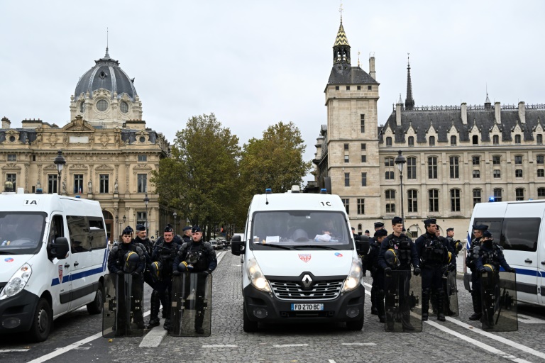 Place du Châtelet, en plein centre de la capitale, la foule a été empêchée de se mettre en mouvement par un très important dispositif policier.