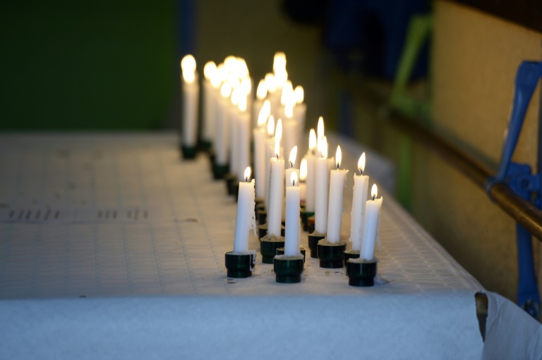 A l'entrĂ©e de la salle des fĂȘtes, oĂč 43 bougies ont Ă©tĂ© allumĂ©es en hommage aux victimes, une marche est annoncĂ©e, dimanche Ă 15H00, en lettres noires sur un grand panneau blanc.