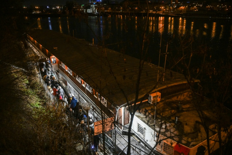 En cette soirée particulièrement glaciale, des dizaines de personnes font la queue pour passer la nuit sur l'Hermes, une péniche amarrée près de l'un des nombreux ponts qui enjambent la rivière Vltava à Prague, où le nombre de sans-abri connaît une augmentation inquiétante.