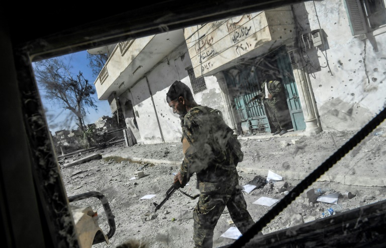 Ces accessoires de fortune sont omniprésents sur le front de Raqa, notamment près de l'hôpital et du stade de la ville, les deux secteurs où des jihadistes résistent encore.