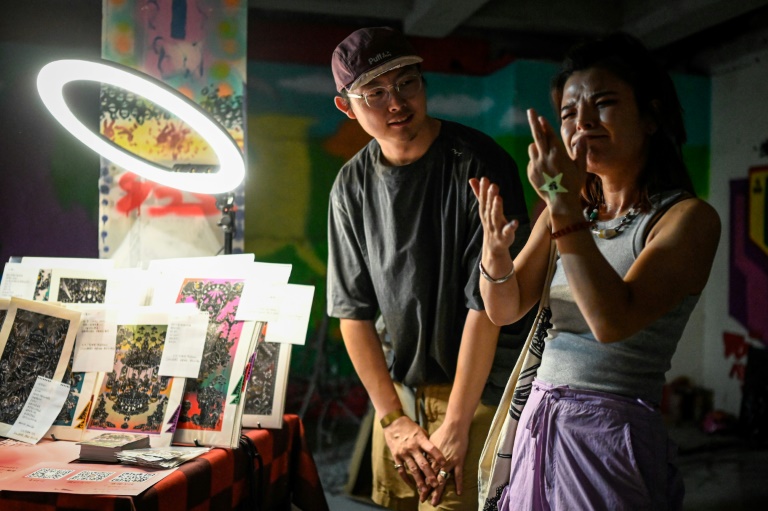 "L'objectif de cet événement, c'est de casser les barrières entre les sourds et les entendants à travers le jeu et le langage du corps", explique à l'AFP Alice Hu, co-organisatrice de la soirée et elle-même artiste visuelle sourde.