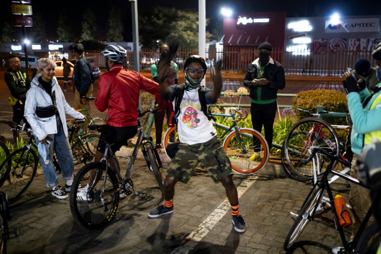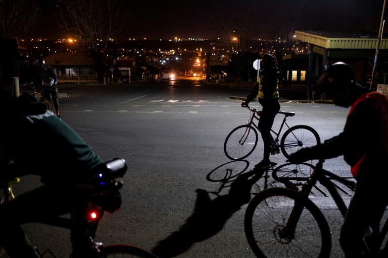 A la sortie de plus d'un mois d'un des confinements les plus stricts du monde, imposé en Afrique du Sud en mars-avril 2020, Tebogo Galagala et Tiyiselane Mashele, qui organisent deux fois par mois les randonnées nocturnes des "Bandits à vélo", ont réalisé qu'ils étaient loin d'en avoir fini avec les restrictions sanitaires liées au Covid.