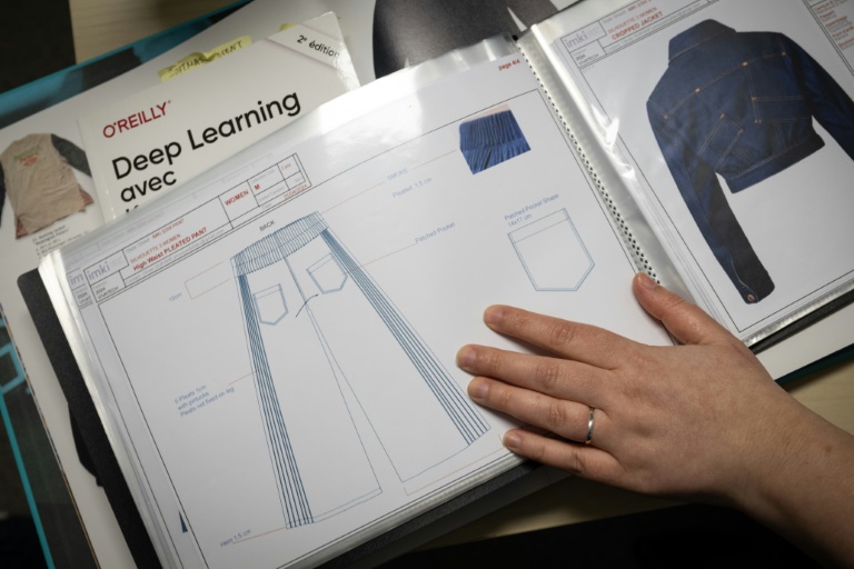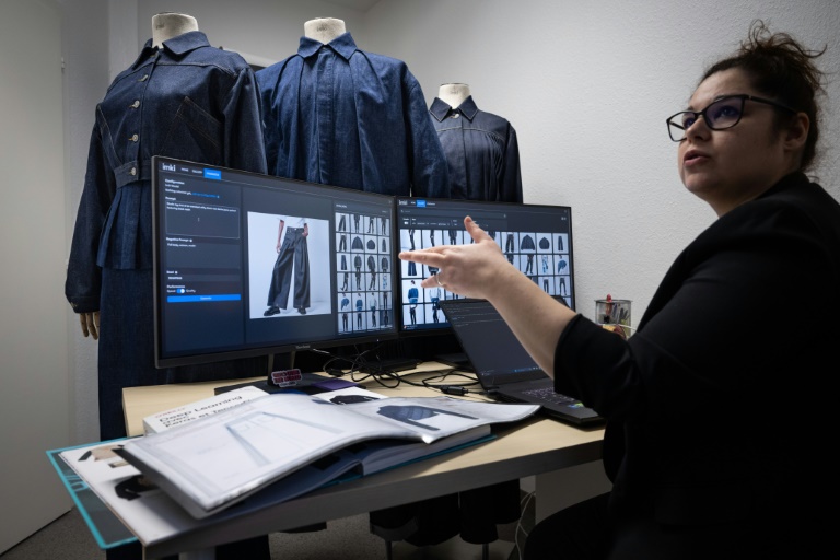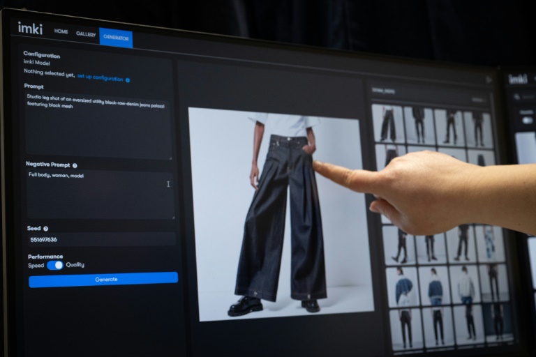 "Denim", "noir", "minimaliste", "chic"... Aurélie Pello tape des mots clés précis dans le logiciel dopé à l'intelligence artificielle et, en quelques secondes, surgit sur son écran une image extrêmement réaliste du vêtement: un jean oversize avec des plis.