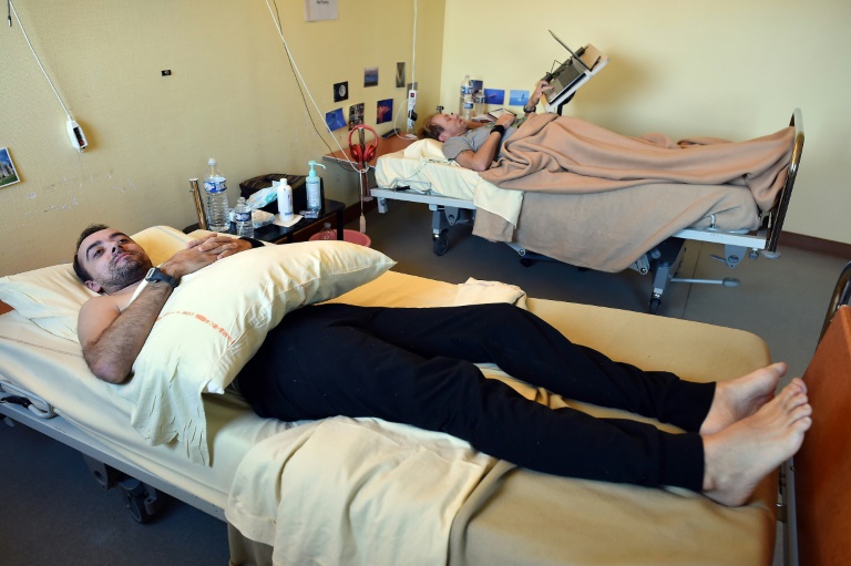 "Pendant 30 ou 40 ans, il n'y avait que l'exercice physique" pour se maintenir en forme. "Le problème c'est que si l'on fait de l'exercice physique on perd du poids, or les astronautes, dans l'espace perdent déjà du poids", dit-elle. A la veille de se lever, après avoir passé deux mois couché, Sébastien, barbe de 3 jours et torse nu sur son lit incliné, affirme qu'il ne souffre pas trop de la sédentarité. Ni de la position tête en bas. Un procédé inventé par les cosmonautes russes pour reproduire sur Terre les effets de l'impesanteur.