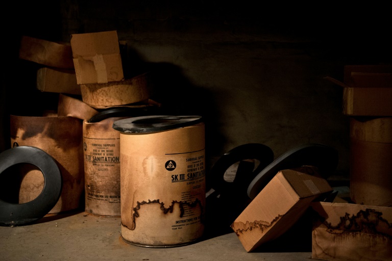 "C'est une véritable capsule temporelle", s'émerveille le conservateur, en ouvrant le couvercle d'une barrique noire en métal. "Provisions de survie. Fournies par le bureau de la défense civile. Ministère de la Défense" peut-on lire sur le tonneau contenant encore sa précieuse cargaison: plus de 60 litres d'eau.