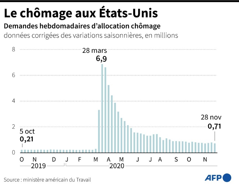 Ces aides prendront fin le 26 décembre, sauf si les élus du Congrès parviennent rapidement à se mettre d'accord pour les prolonger, sans attendre l'arrivée à la Maison Blanche du nouveau président Joe Biden, le 20 janvier, et de sa secrétaire au Trésor, Janet Yellen, une économiste progressiste spécialiste du chômage.