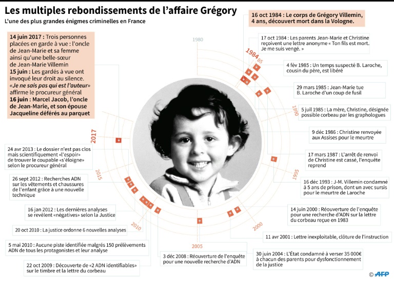 La justice a relancé l'affaire en arrêtant mercredi Mme Villemin, 61 ans, mais aussi Marcel et Jacqueline Jacob, oncle et tante de Jean-Marie Villemin, le père du petit Grégory. Après leur garde à vue, le couple a été mis en examen pour enlèvement et séquestration suivie de mort.