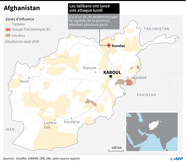 Les talibans marquent ainsi le premier anniversaire de leur brève prise de contrôle de Kunduz, seule capitale provinciale tombée entre leurs mains depuis la chute de leur régime en 2001.