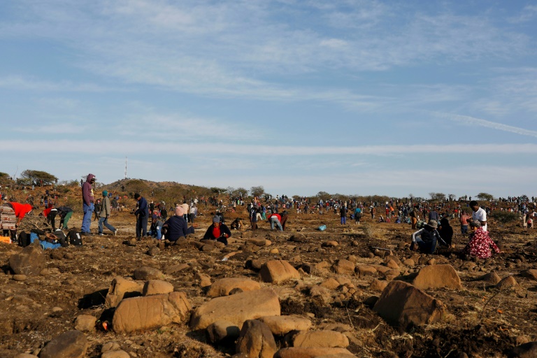 Elle recrache la terre après avoir nettoyé le caillou dans sa bouche, convaincue de tenir là une fortune. Comme Lihle Magudulela, ils sont des milliers ces derniers jours à affluer vers ce coin pauvre d'Afrique du Sud, dans une folle ruée vers de prétendus diamants.