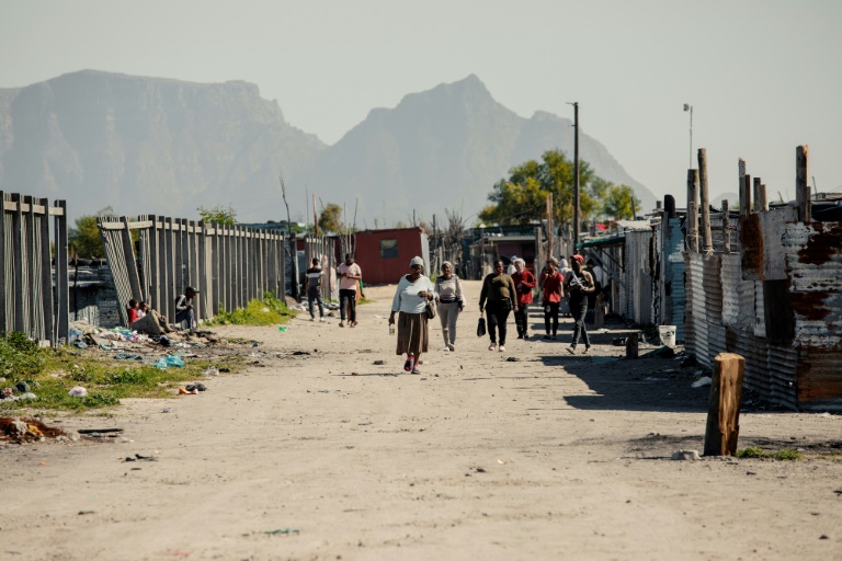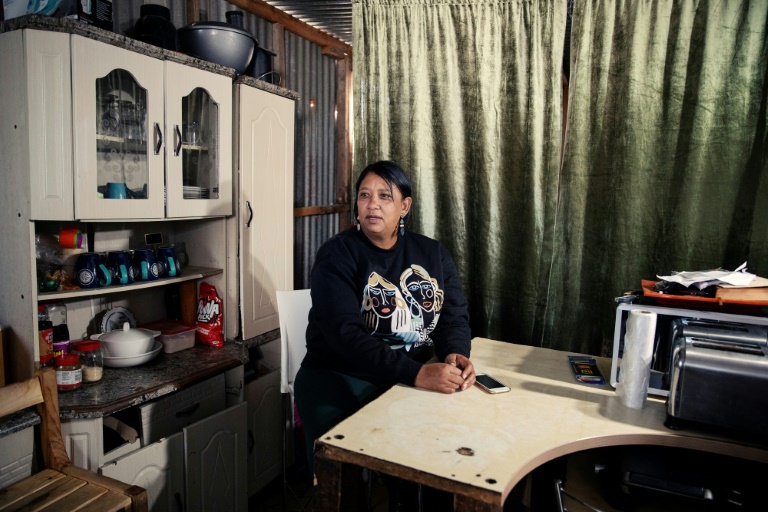 Des rangées de cahutes alignées sur un terrain désolé près de l'aéroport international du Cap: quand Ursula Felkers a atterri ici en 2007, elle pensait n'y rester que quelques mois. Mais les loyers élevés et la pénurie de logements la cantonnent ici, loin de tout.