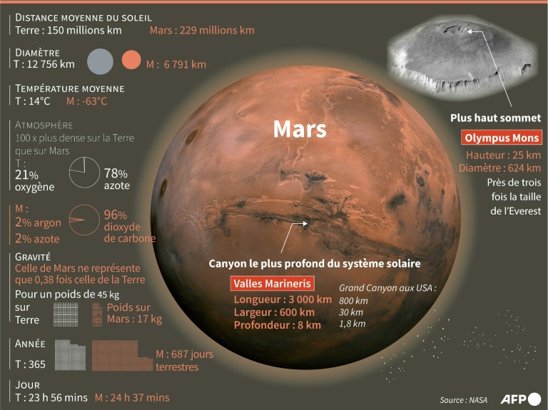 Les Etats-Unis comptent envoyer cet été leur rover martien le plus sophistiqué à ce jour, "Perseverance", qui va tenter d'y déterrer des preuves que des microbes vivaient sur cette planète il y a trois milliards et demi d'années. La Chine s'apprête aussi à expédier d'ici fin juillet une sonde et un petit robot téléguidé vers Mars, sous le nom de mission "Tianwen-1".