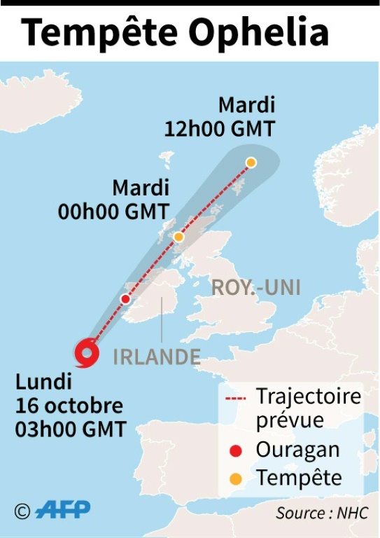 Le sud-ouest de l'Irlande en alerte rouge commençait à essuyer lundi matin la tempête post-tropicale issue de l'ouragan Ophelia, avec des vents atteignant 148km/h et des milliers de personnes sans électricité.