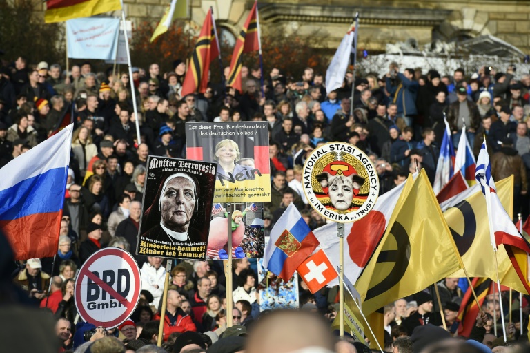 Selon une journaliste de l'AFP, ils étaient quelques milliers vers 15H00 GMT, réunis dans le calme, agitant de très nombreux drapeaux et brandissant des pancartes hostiles à la chancelière allemande Angela Merkel, au centre des critiques pour sa politique de main tendue envers les migrants.