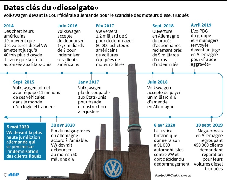 Presque cinq ans après son éclatement, le scandale des moteurs diesel truqués s'approche lundi de son épilogue judiciaire, avec un arrêt décisif en Allemagne dans le conflit opposant Volkswagen à des dizaines de milliers de clients.