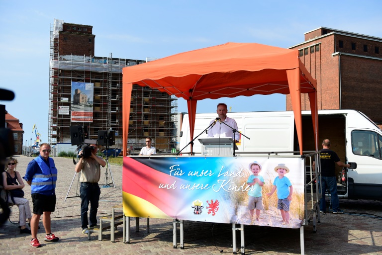 "Si l'on veut continuer à se sentir en Allemagne, il faut un signal d'arrêt !", lance Lars Löwe, candidat local de l'Alternative pour l'Allemagne (AfD, droite populiste), aux centaines de personnes massées sur le vieux port par un samedi radieux.