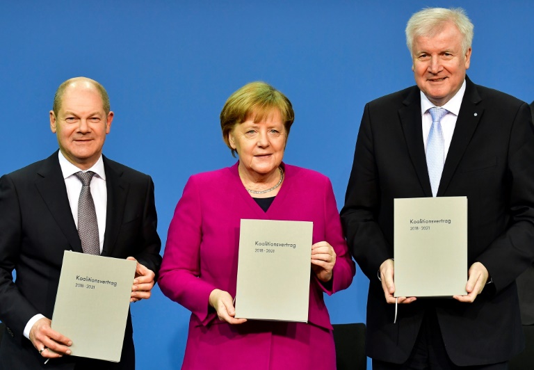 Face à la menace de l'AfD, elle a dû donner des gages à l'aile la plus à droite de son parti, promettant de plafonner les arrivées de migrants et accordant une place au gouvernement à son principal critique de la CDU, l'ambitieux Jens Spahn. Enfin, son gouvernement a promis d'être celui des "petites gens", selon le ministre désigné de l'Intérieur, Horst Seehofer.