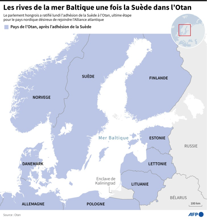 L'adhésion de la Suède, après celle de la Finlande l'an dernier, signifie que tous les pays bordant la mer Baltique, à l'exception de la Russie, sont désormais membres de l'Alliance atlantique.