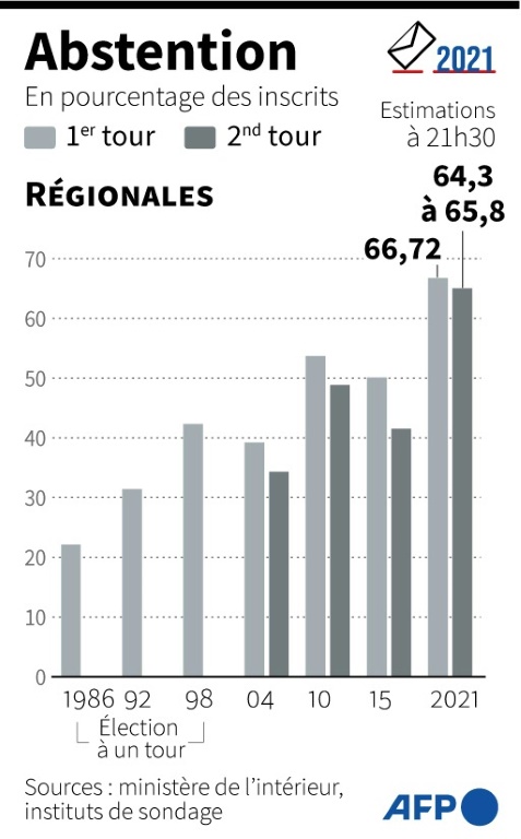 Lassitude post-Covid, défiance généralisée, illisibilité des scrutins, un peu de tout ça à la fois ? Malgré les appels au vote répétés de la classe politique, le second tour des régionales et départementales a confirmé dimanche une abstention record, autour de 66%, un chiffre quasi identique au premier tour.