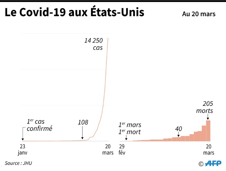 Vendredi, le maire de New York, Bill de Blasio, a de nouveau réclamé un soutien renforcé du gouvernement fédéral, notamment pour l'acheminement de masques et de respirateurs dans les régions les plus touchées. Il a accusé Donald Trump de "minimiser le danger et refuse de mettre en oeuvre les moyens fédéraux" dont il dispose. "Des gens vont mourir alors que cela pourrait être évité." Selon l'université Johns Hopkins, plus de 14.600 cas de coronavirus ont été recensés aux Etats-Unis, qui comptent plus de 200 décès.