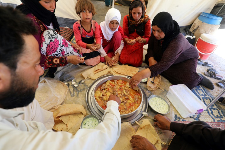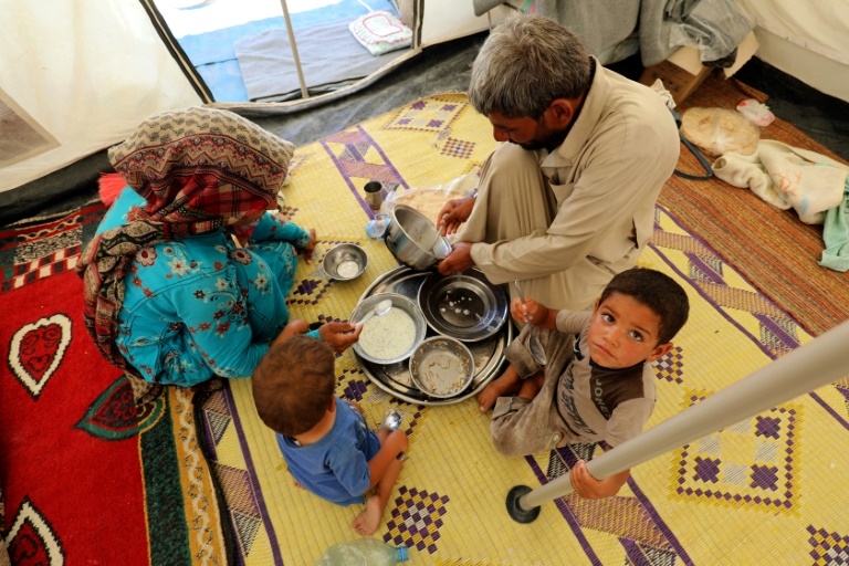 Dans le camp, qui abrite actuellement 7.000 déplacés selon les responsables, une multitude de gamins jouent entre les tentes, à l'intérieur desquelles des femmes épluchent pommes de terre et tomates. Alors que la température avoisine les 50 degrés Celsius, des matelas ont été installés devant les tentes, certains préférant dormir à la belle étoile.