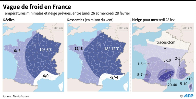 Une nouvelle perturbation venue d'Espagne doit amener de la neige dans le Sud mercredi, où 13 départements sont placés en vigilance orange, alors que dans le Nord, les températures négatives avaient atteint un pic de froid dans la nuit.
