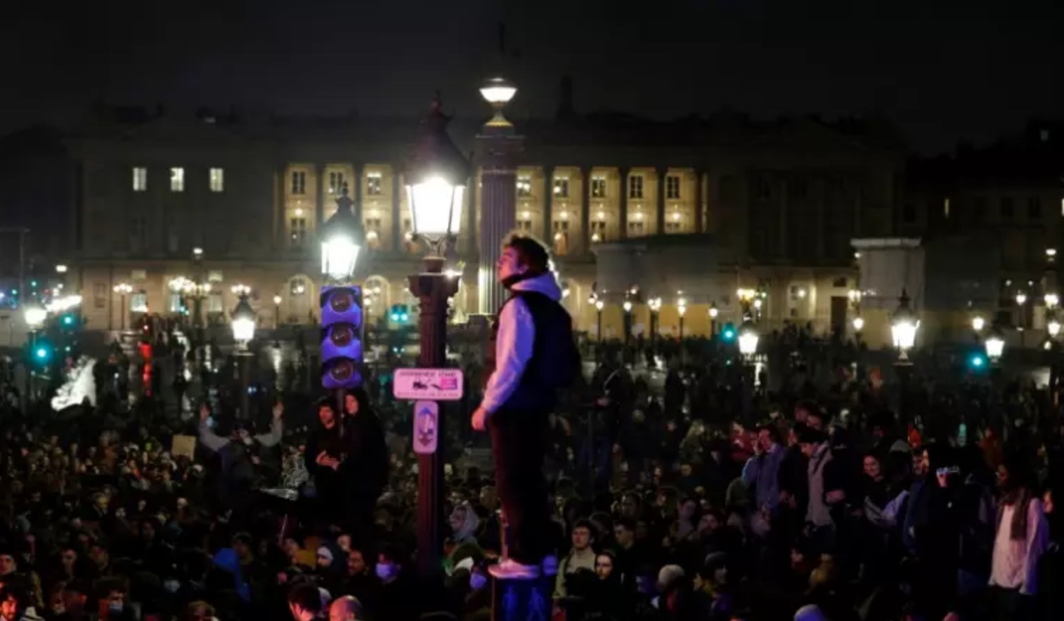 Autour de Norredine, gazier chez GRDF, les vagues de jeunes encagoulés affrontent la police à intervalles réguliers sur l'immense place, célèbre pour avoir été l'un des lieux d'exécution pendant la Révolution. En toile de fond, l'Assemblée Nationale, illuminée par les gyrophares, est toute proche mais inaccessible, barricadée par un cordon de véhicules de gendarmerie.
