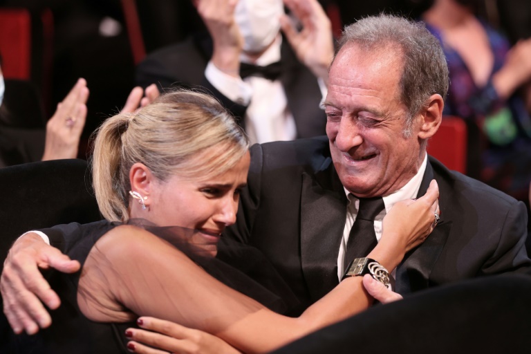 "Merci aussi au jury de laisser entrer les monstres", a déclaré, en larmes, la réalisatrice Julia Ducournau en montant sur la scène du Palais des Festivals.