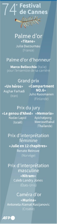 Le Festival de Cannes s'est offert un coup de jeune pour sa première édition depuis le début de la pandémie, en offrant la Palme d'or à une réalisatrice transgressive de 37 ans, Julia Ducournau, au terme d'une édition haute en couleur.
