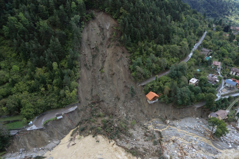 Les hélicoptères de la gendarmerie, des pompiers, et de l'armée se succèdent un peu plus bas pour transporter les sinistrés, alors que des pluies sont de nouveau attendues sur la zone. Traversant à pied sur un étroit passage au-dessus de l'éboulis qui coupe la route, des pompiers apportent sur leur dos du matériel de secours.