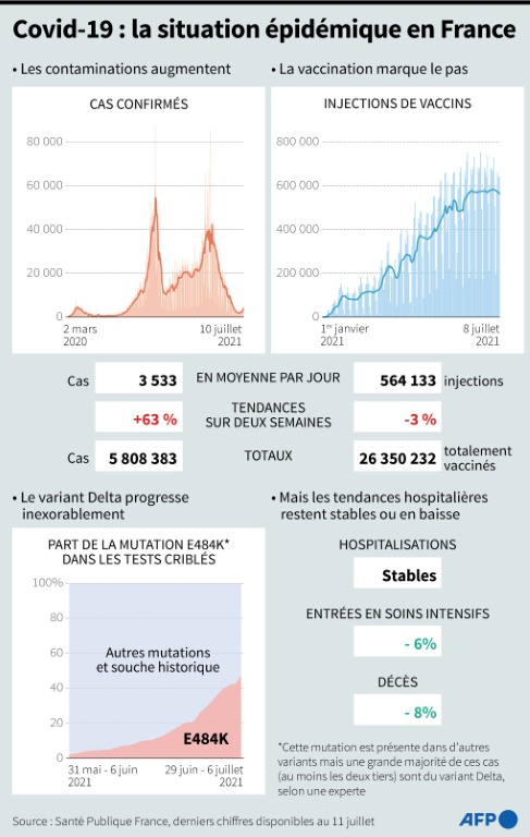 En nette baisse depuis des semaines, le nombre de contaminations par jour est récemment reparti à la hausse, à plus de 4.200 dimanche. Il pourrait monter "au-dessus de 20.000 début août si nous n'agissons pas", a averti dimanche le ministre de la Santé.