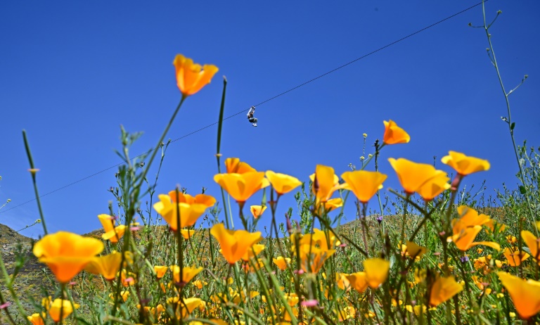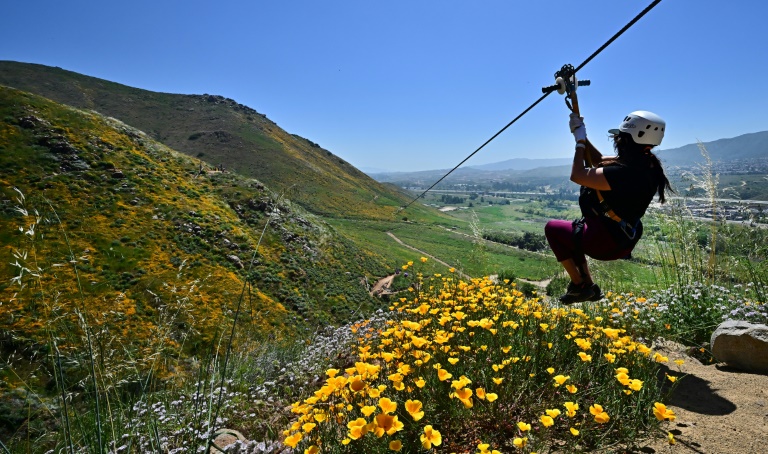Face à la fermeture du sentier public, son parc d'aventures voit sa clientèle augmenter ce printemps. De nombreux amoureux de nature utilisent sa tyrolienne pour admirer le cru 2023 du "Super Bloom", sans abimer l'environnement.