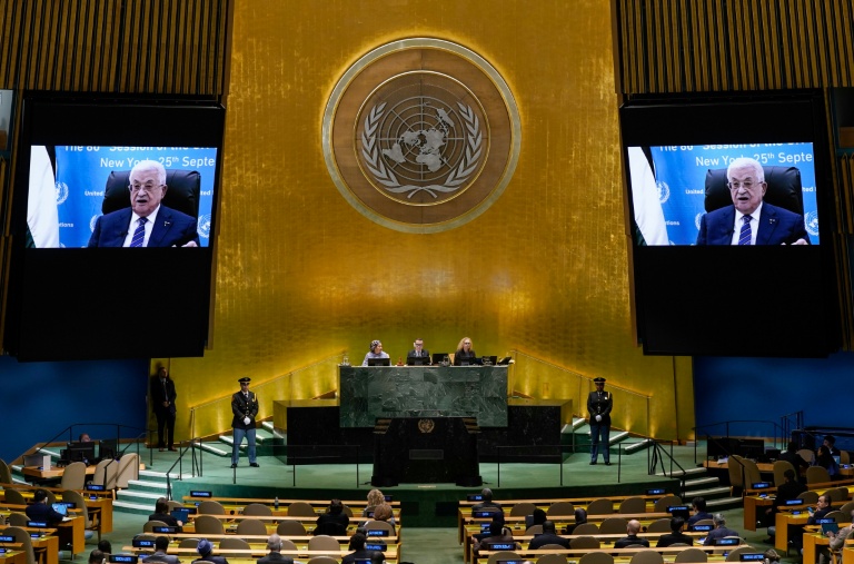 Privé de visa par les autorités américaines, le président palestinien Mahmoud Abbas s'est exprimé jeudi par vidéo à l'ONU, répétant les gages donnés il y a quelques mois pour convaincre notamment la France de reconnaître l'Etat de Palestine.