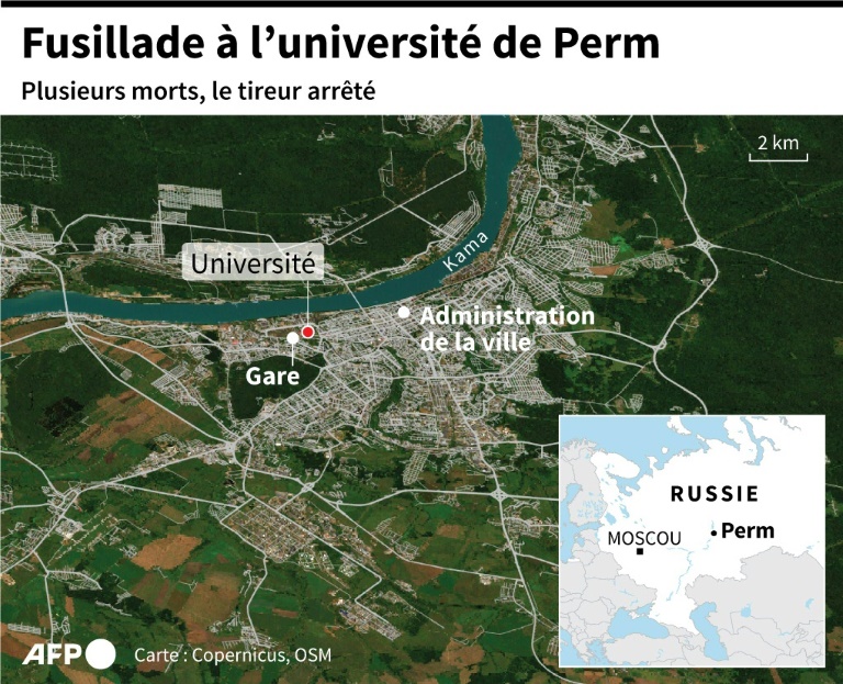 Le président Vladimir Poutine a regretté lundi "un grand malheur pour tout le pays", appelant les forces de l'ordre à faire la lumière sur les motivations du tireur. "Aucune parole ne peut faire taire la douleur du deuil, de ces pertes, surtout lorsqu'il s'agit de jeunes qui commençaient tout juste leur vie", a-t-il encore dit. Les fusillades dans les établissements d'enseignement ont longtemps été rares en Russie, mais elles se sont multipliées ces derniers temps, le président russe dénonçant même un phénomène importé des Etats-Unis et y voyant un effet pervers de la mondialisation.