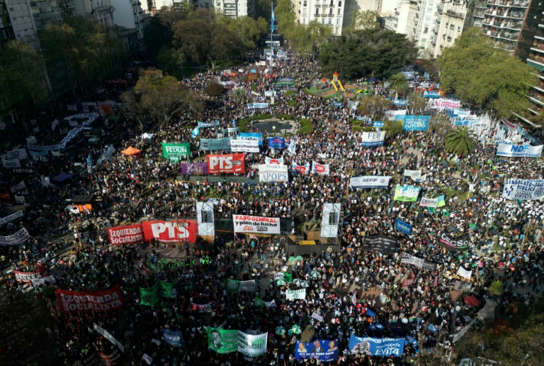 Des milliers d'Argentins manifestaient mercredi à Buenos Aires, l'une des mobilisations les plus suivies des derniers mois, pour faire pression sur le Parlement, qui débat des vetos répétés du président ultralibéral Javier Milei à des financements pour l'université et la santé pédiatrique.