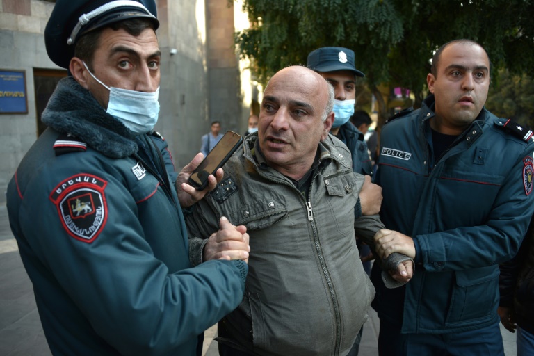 Plusieurs d'entre eux, dont des figures politiques comme le chef du parti ArmĂ©nie prospĂšre, ont Ă©tĂ© arrĂȘtĂ©s au dĂ©but de la manifestation, avant que la police ne laisse finalement le rassemblement se poursuivre malgrĂ© son interdiction du fait de la loi martiale en vigueur depuis fin septembre.