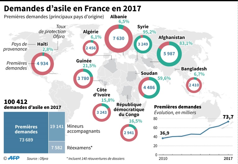 Plusieurs acteurs de l'asile seront en grève mercredi: l'Ofpra (Office français de protection des réfugiés et apatrides), qui n'avait pas connu de tel mouvement depuis cinq ans, mais aussi la Cour nationale du droit d'asile (CNDA), qui entamera son neuvième jour de grève. Un rassemblement est prévu à 11H00 devant le Conseil d'Etat.