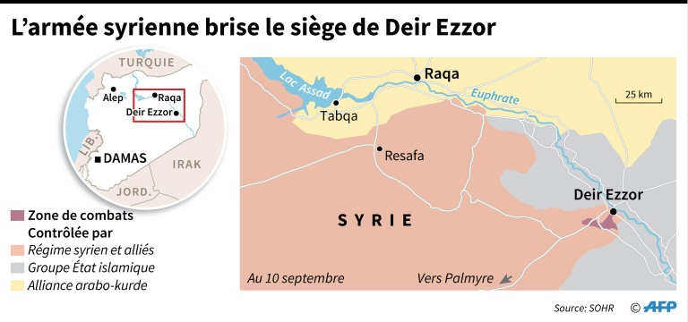 Le régime de Damas a bénéficié de l'appui décisif de la Russie et de l'Iran. Et, avec l'entrée dans la ville de Deir Ezzor (est) contrôlée par le groupe Etat islamique (EI) --quelques mois après avoir bouté les rebelles hors d'Alep (nord) et s'être emparé de larges secteurs dans le désert du sud-est--, il contrôle désormais plus de la moitié du territoire.
