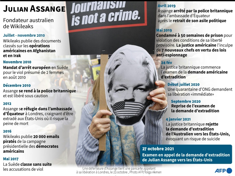 L'Australien de 50 ans risque 175 ans de prison aux Etats-Unis, où il est poursuivi pour avoir publié des centaines de milliers de documents classifiés. Au deuxième jour de l'examen devant la Haute-Cour de Londres de l'appel américain, ses avocats ont plaidé que les nouveaux éléments apportés ne justifiaient aucunement de revenir sur le refus de l'extrader.