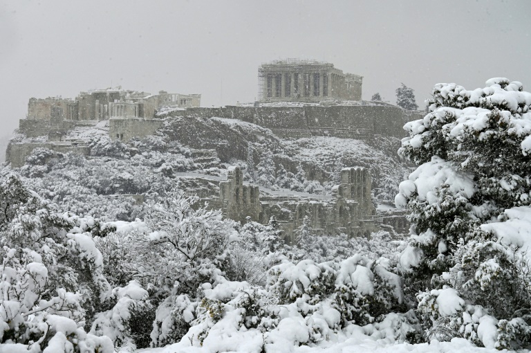 L'Acropole d'Athènes était recouverte mardi d'un manteau neigeux, offrant des images exceptionnelles pour la Grèce frappée par une vague de froid "sans précédent" depuis au moins dix ans, qui a fait deux morts sur les îles de Crète et d'Eubée, selon les autorités.