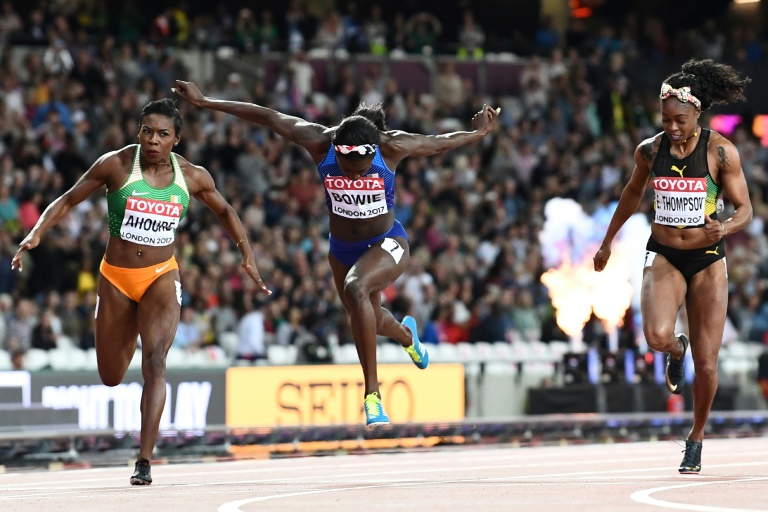 Bowie (26 ans) a devancé l'Ivoirienne Marie-Josée Ta Lou (10.86) et la Néerlandaise Dafne Schippers (10.96) a complété le podium. Thompson, championne olympique du 100 m et du 200 m à Rio en 2016 et meilleure performeuse mondiale de l'année (10.71), n'a terminé qu'en 10 sec 98.