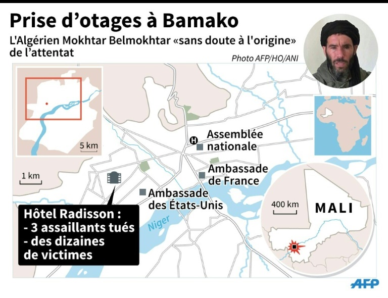 De même source, "tout porte à croire que les deux étrangers sont allés de bar en bar pour ne pas être remarqués, et à l'aube (du vendredi), des Maliens pourraient les avoir guidés dans l'attaque du Radisson", fréquenté par une clientèle étrangère et des hommes d'affaires.