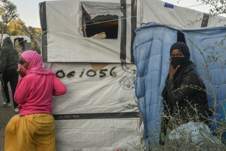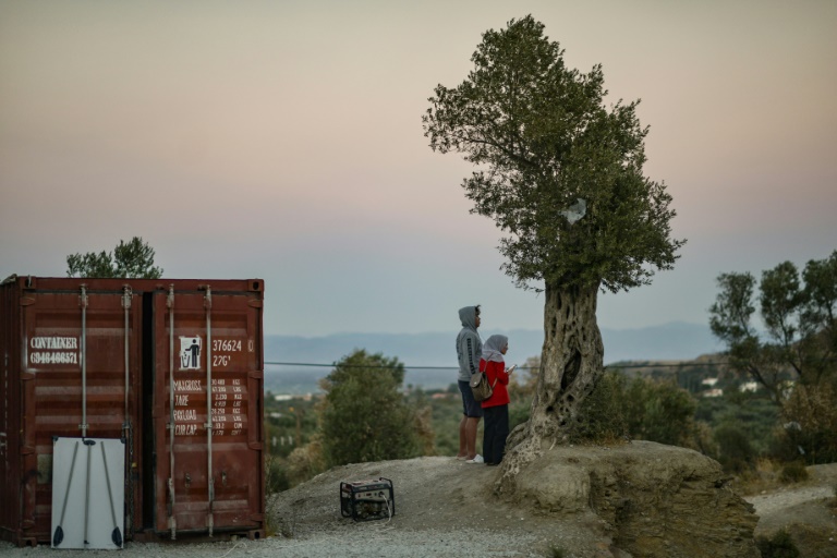 Dans l'attente de l'octroi du droit d'asile et de son départ prévu pour le 8 octobre de Lesbos à destination d'Athènes ou Thessalonique (nord), Jamal doit se contenter avec un groupe de compatriotes d'une tente sombre et surpeuplée alignée avec des centaines d'autres en rangées compactes sur un terrain longeant les grilles du camp "officiel" de Moria.
